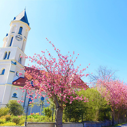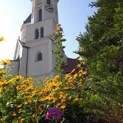 Hochaltar: Der Unterbau des Hochaltars stammt noch von der alten Kirche: aus rotem Admonter Marmor. Die Umfassung des Tabernakels bildet ein Naturstein aus Neunkirchen.
