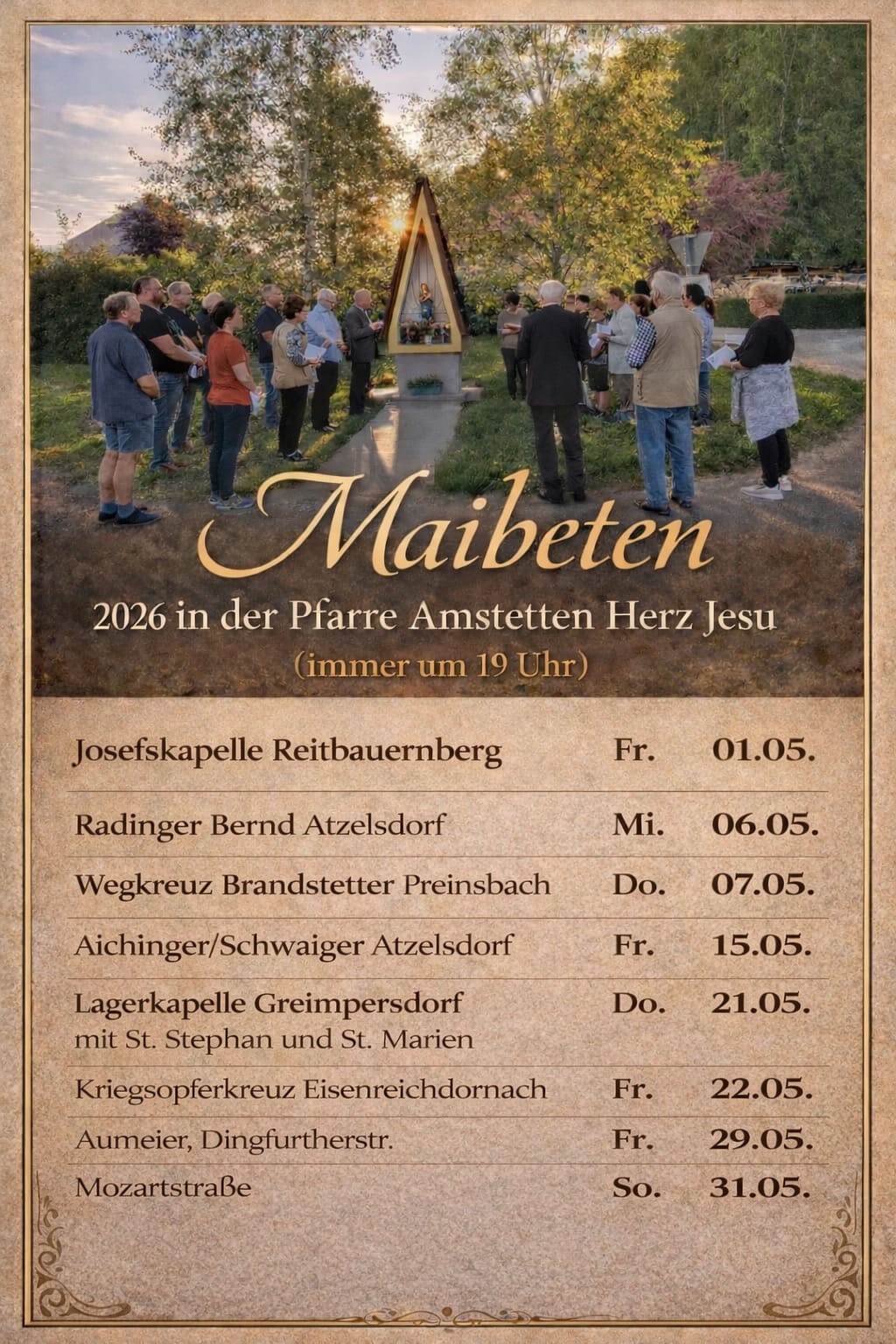 Sa Vorabendmesse: 19:00 Uhr