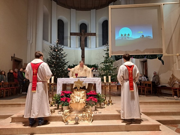Herzliche Einladung zu den Gottesdiensten am Heiligen Abend - mit allen Zeiten Wortgottesfeier für Familien mit Kleinkindern (14.30 Uhr); Kindermette mit Kinderchor (16 Uhr); Christmette (22 Uhr)