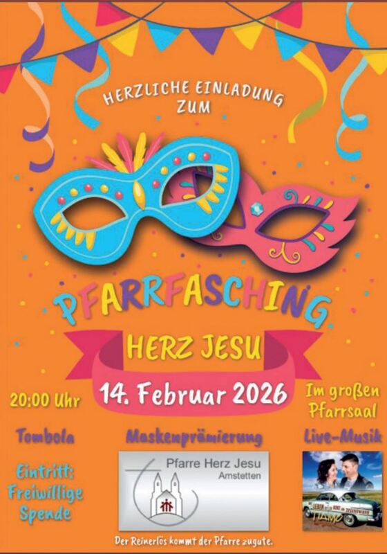 Pfarr-Fasching am 14. Februar 2026 Ob allein oder in der Gruppe, ob geschminkt oder nicht: Herzlich willkommen!