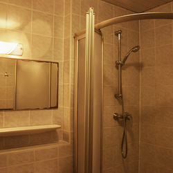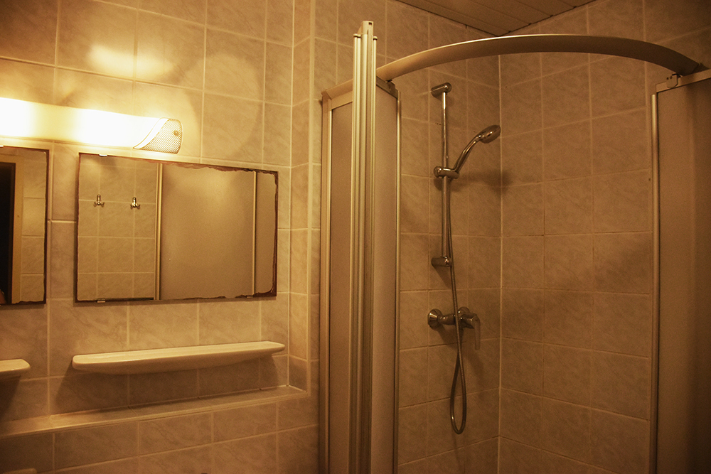 ein eigenes Badezimmer mit Dusche und WC